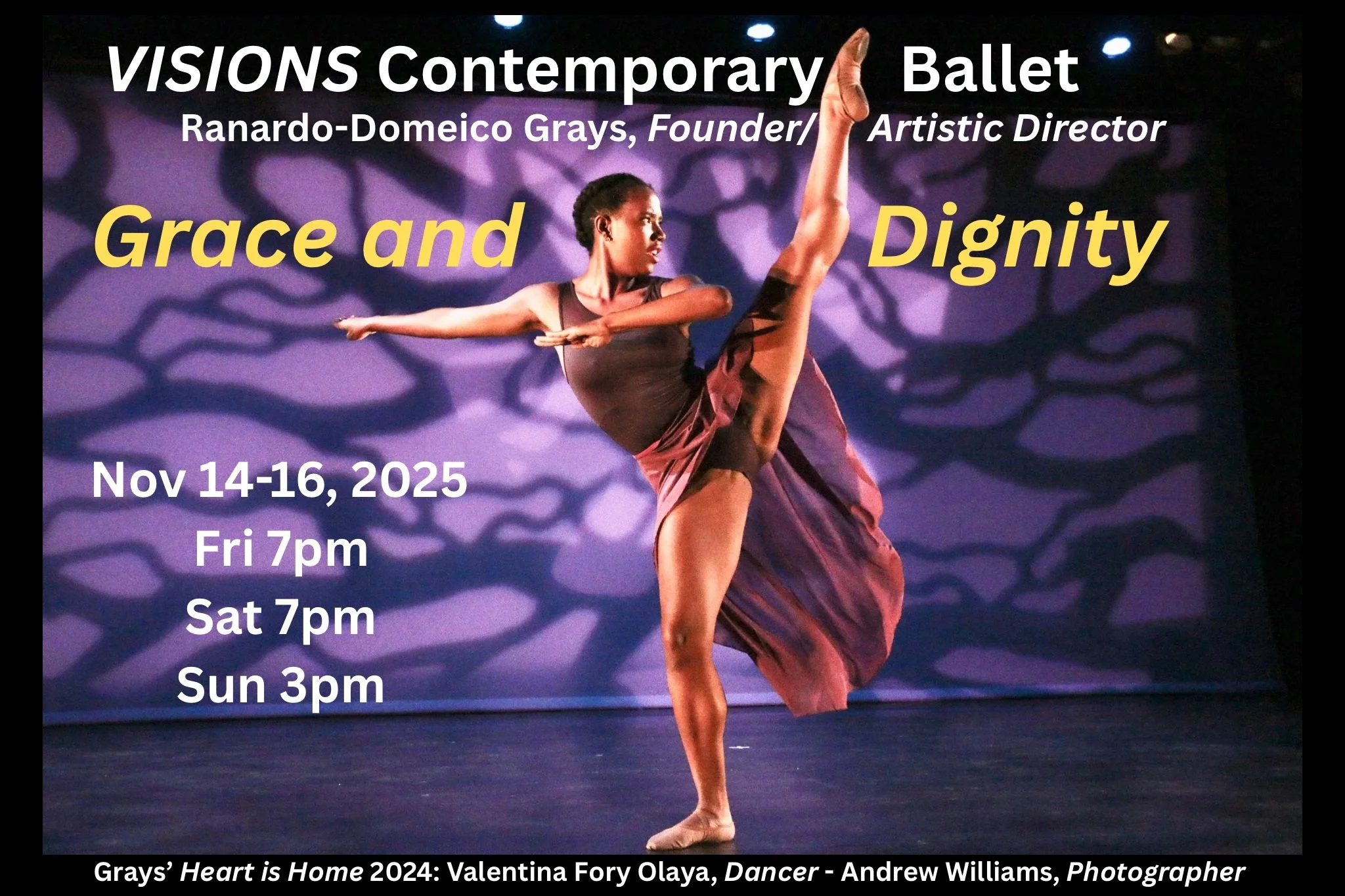 VISIONS Contemporary Ballet, a Harlem-based ethnically diverse company that celebrates contemporary dance rooted in the Black experience, returns to The Riverside Theater on November 14-16, 2025, presenting Grace and Dignity, uplifting thought-provoking ballets with the theme of honor and respect, choreographed by Ranardo-Domeico Grays, featuring the premiere of Freedom, which explores ideas of peace, unity and joy.